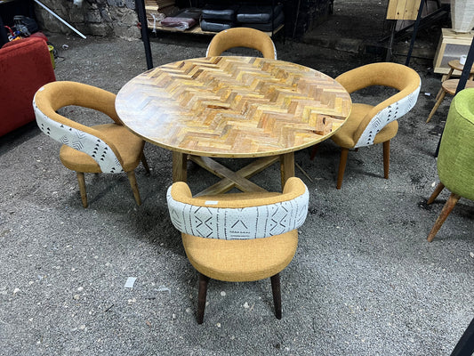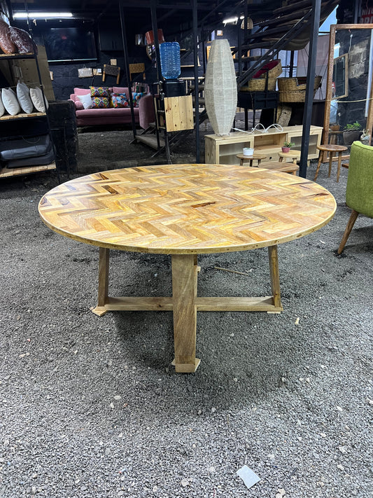 Round Mango wood herringbone pattern dining table