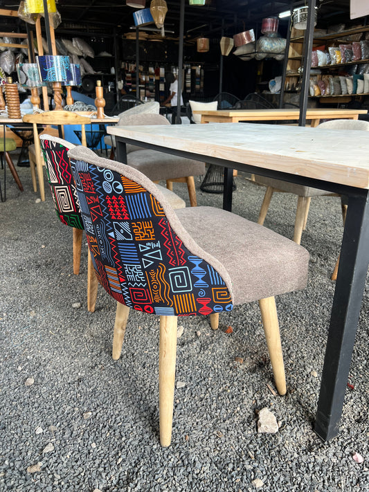 Dining seat with kitenge and grey fabric