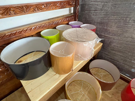 Lamps with wooden stands and creatively designed and handmade lampshade to add colours and life into your space