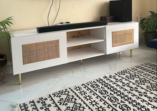 High quality and custom made TV Stands made from a variety of wood types, including the popular and high quality mangowood, pared with ratan to add a touch of uniqueness and livess to the TV stands