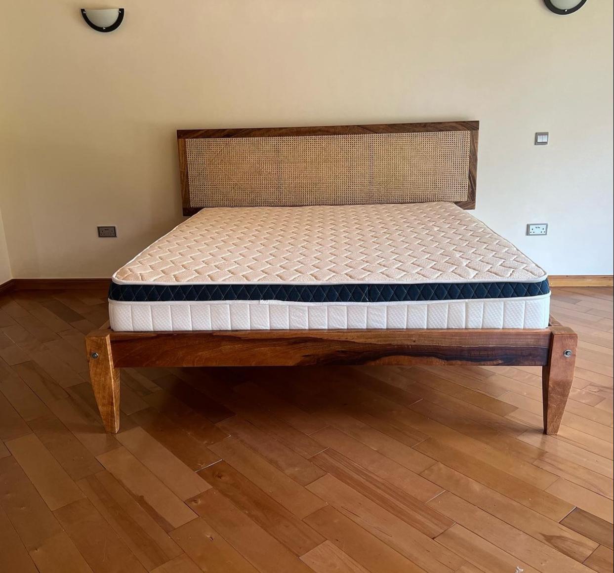 6x6 Bed made from high quality mango wood and ratan headboard