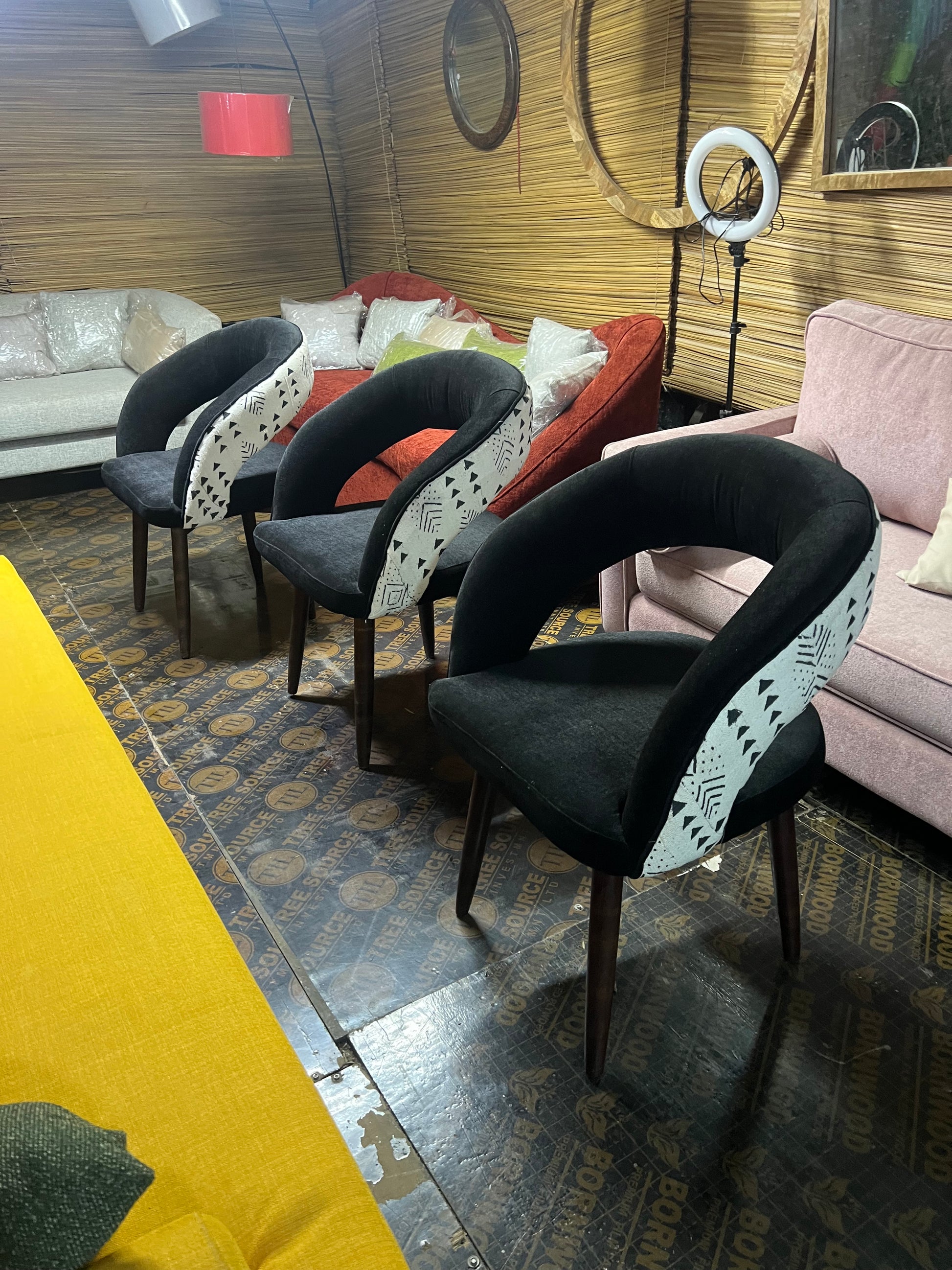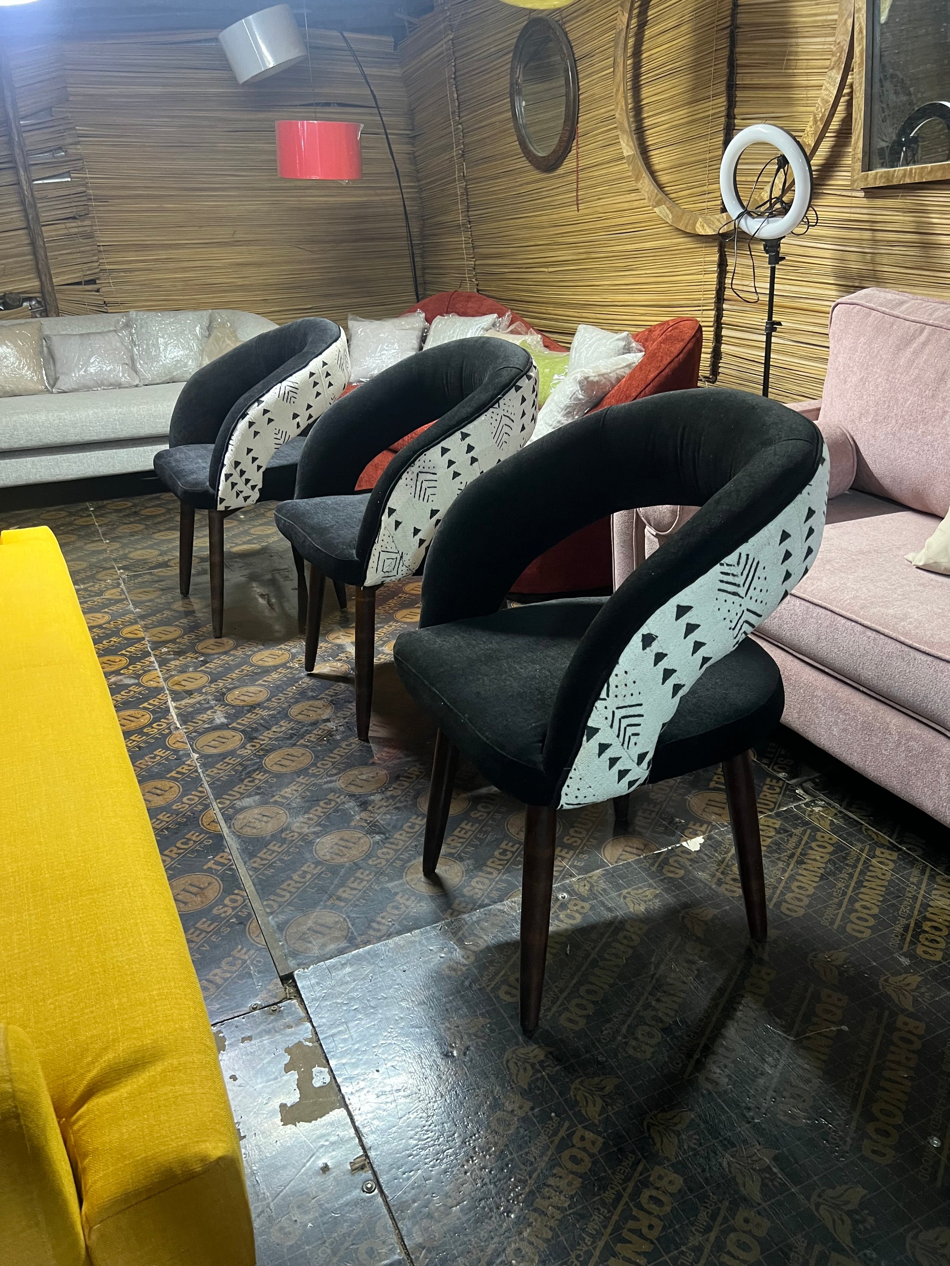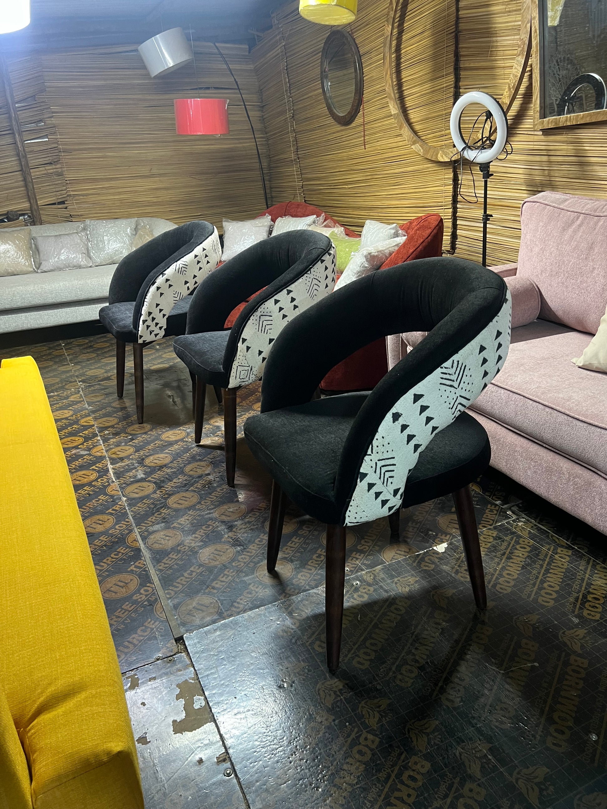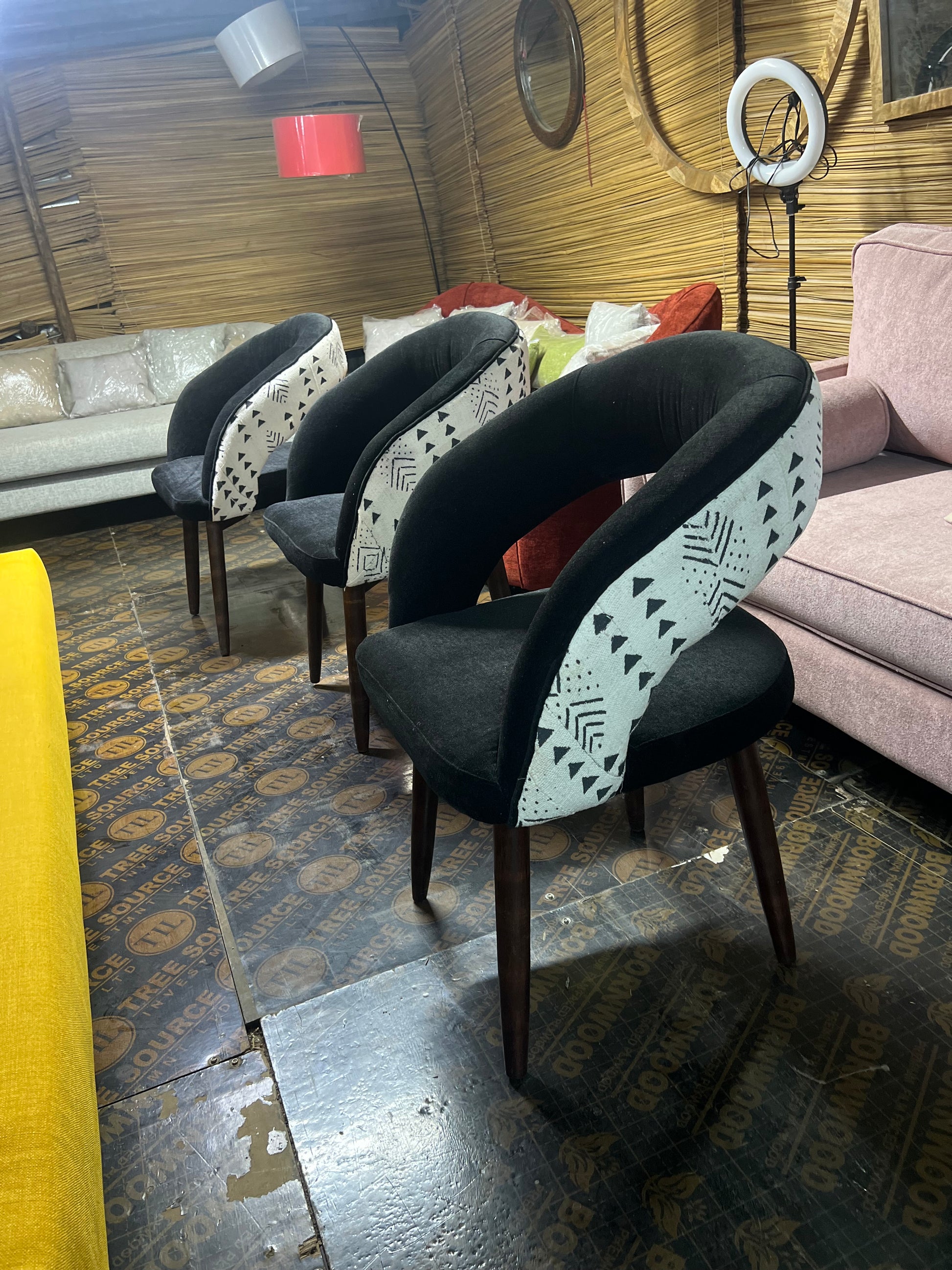 Mudcloth dining chairs with black molfino fabric for ksh 24,000 each