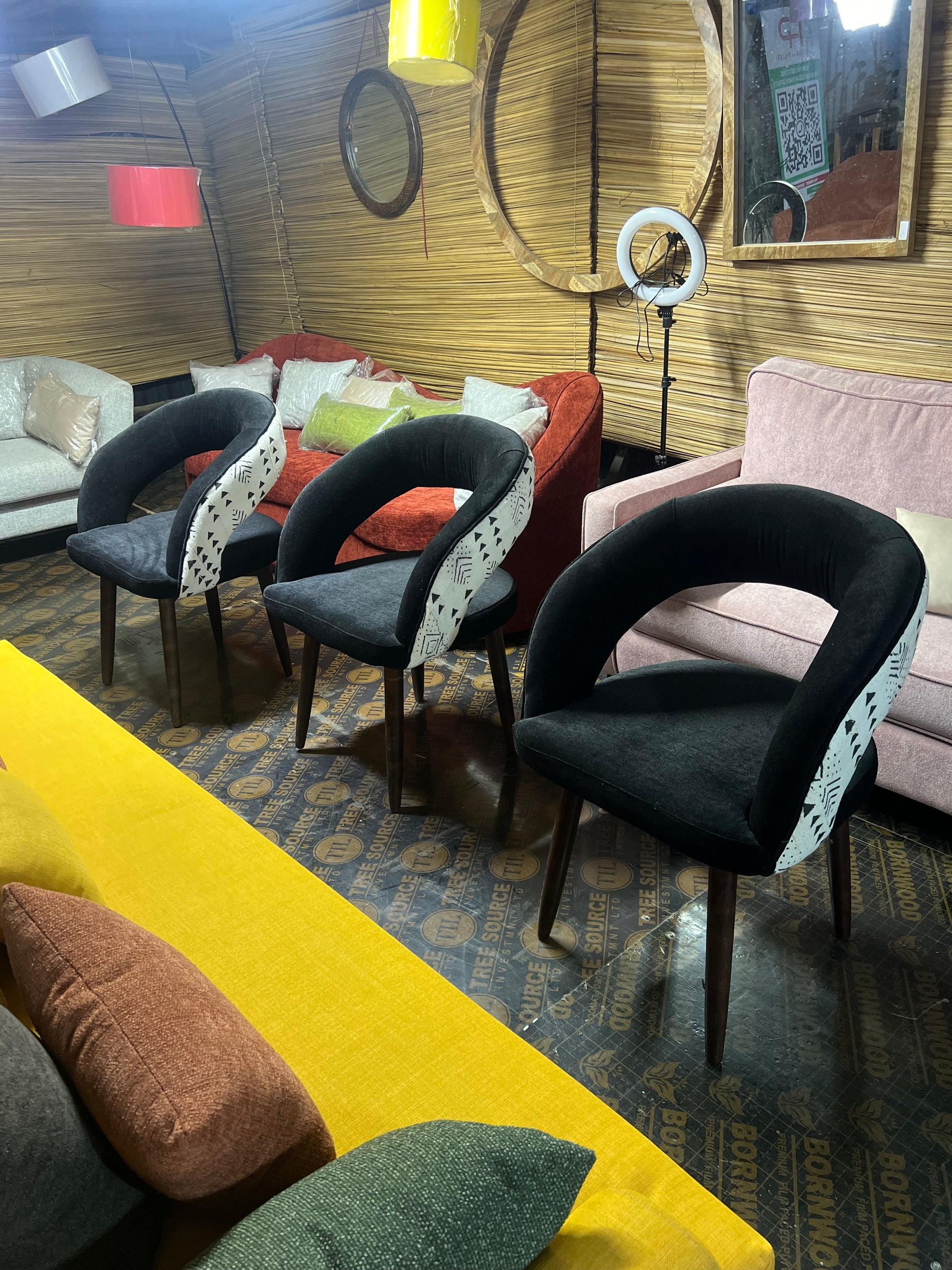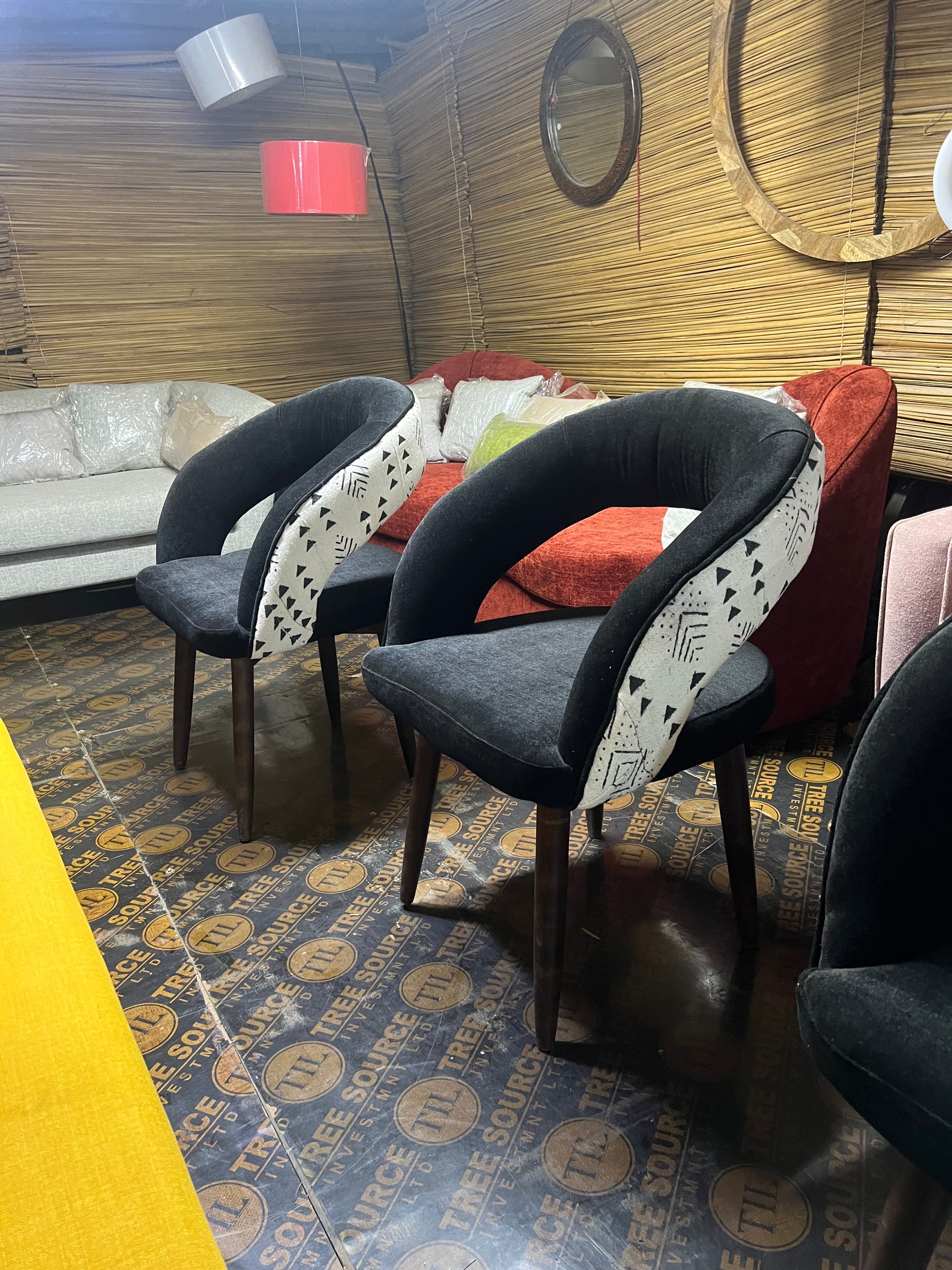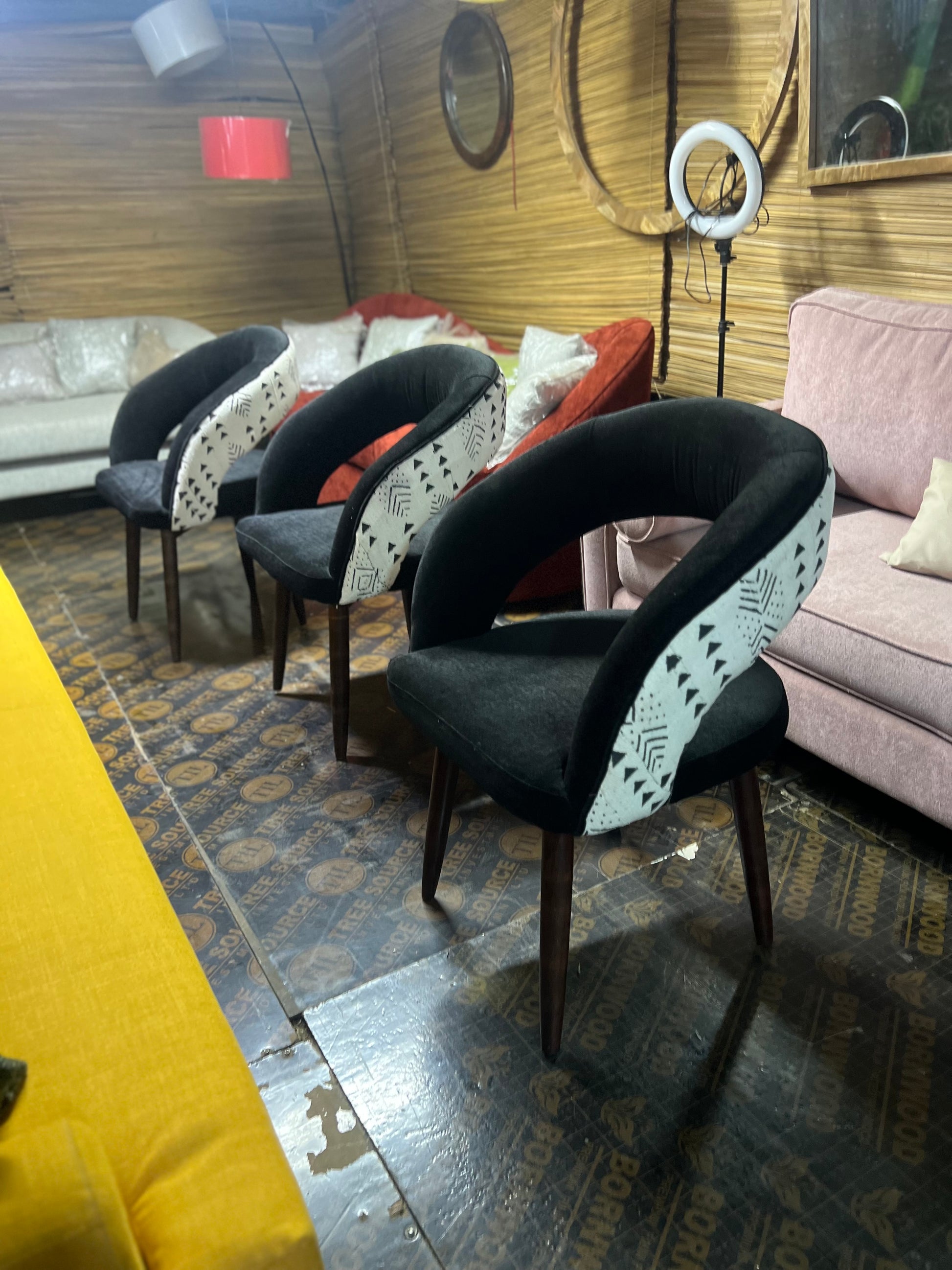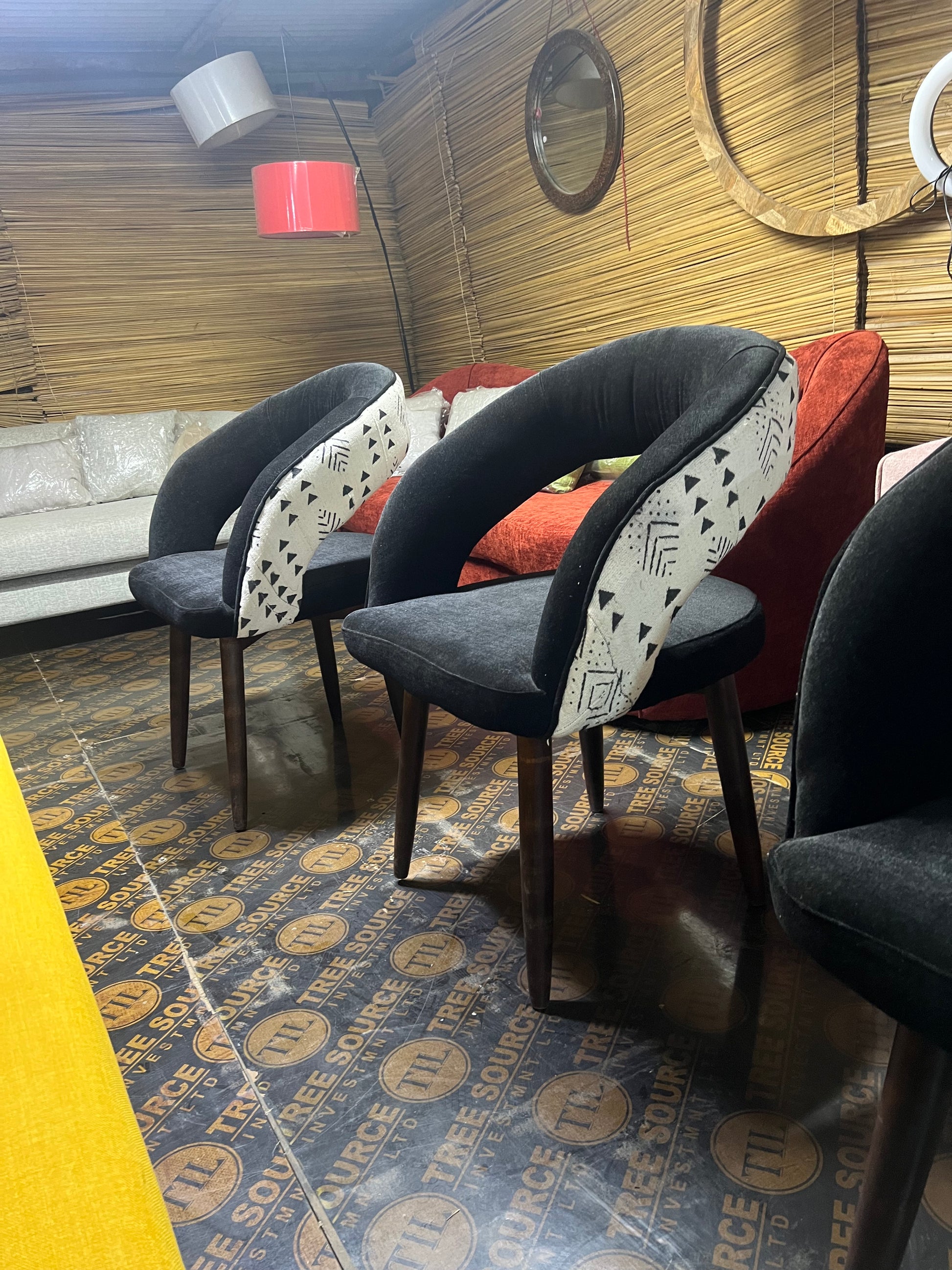 Mudcloth dining chairs with black molfino fabric for ksh 24,000 each