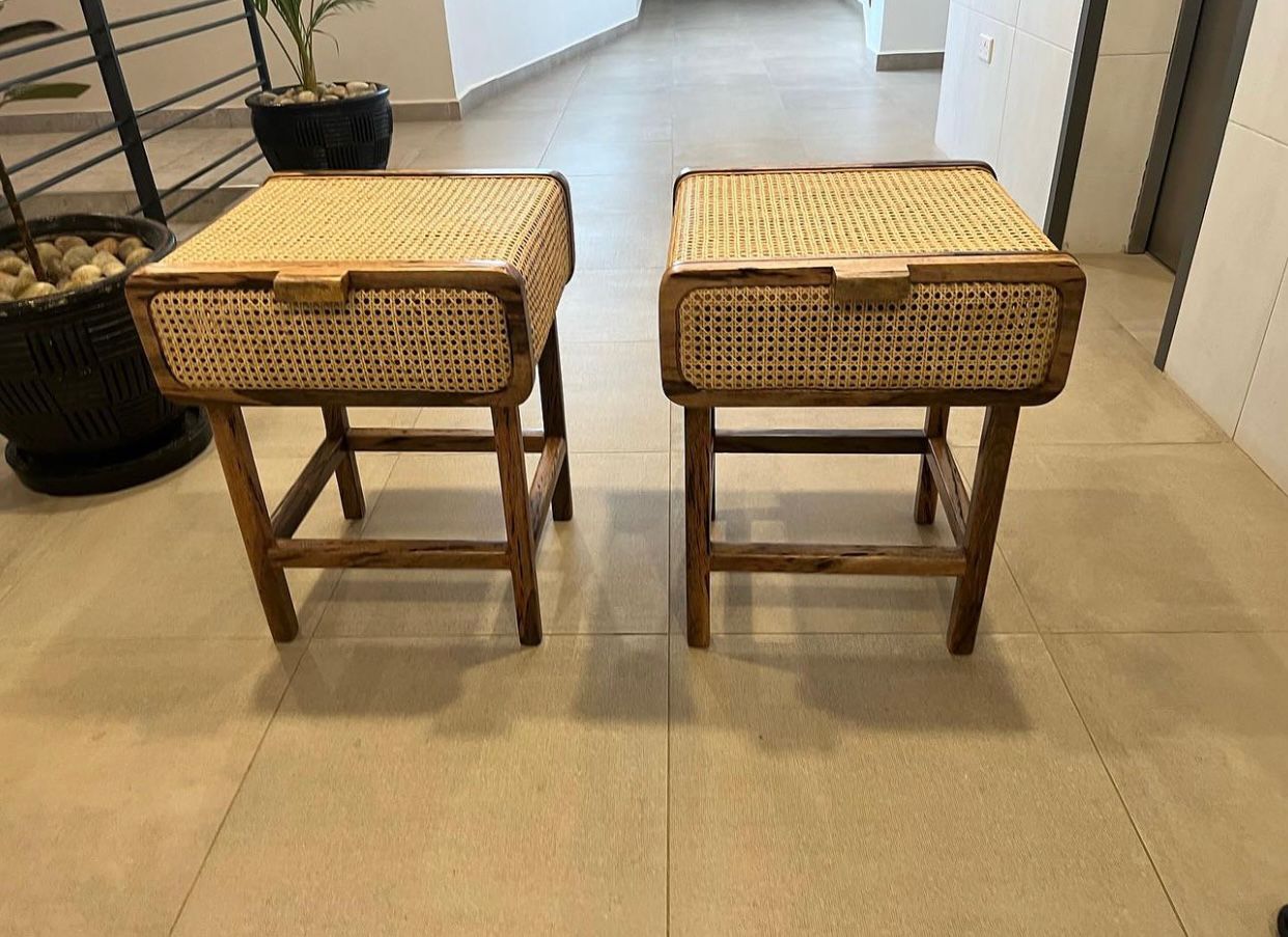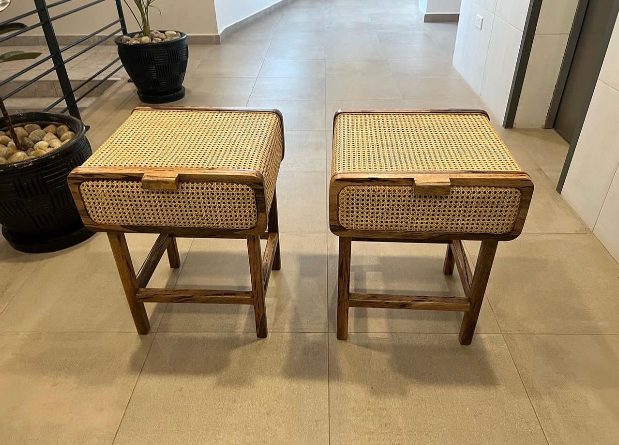 bedside drawers made from mango wood and ratan each for ksh 28,000