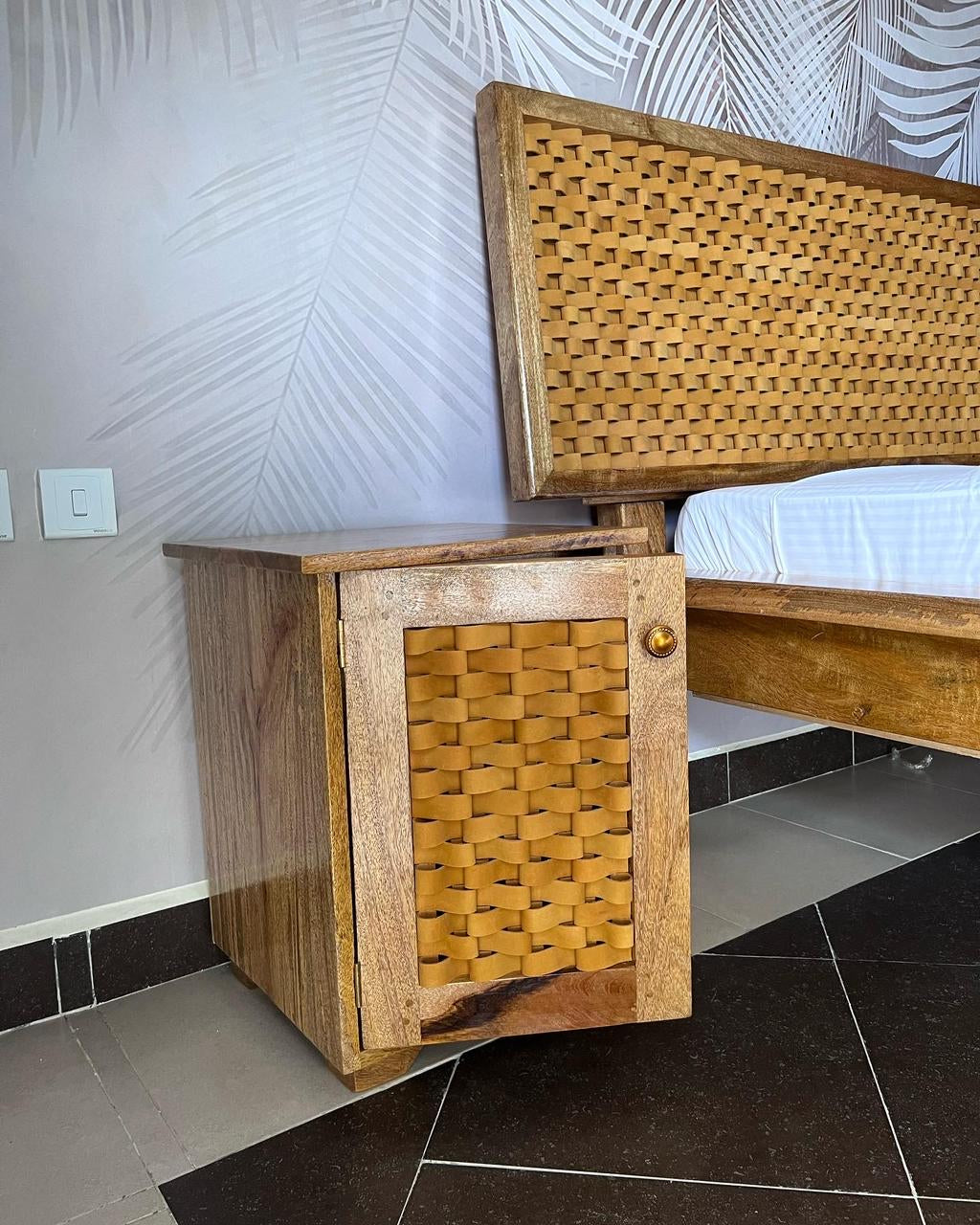 Mangowood and leather bedside drawer
